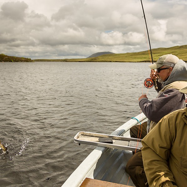 Loch Langabhat is about 7 miles long, with many bays, islets and skerries. It took half an hour in an Argocat to reach it. It is mostly fished later in the season for salmon and sea trout. The brownies responded well to wets, dries, lures and dap. Album navigationPreviousPrevious album:Falls of RogieNextNext album:Trealabhal
